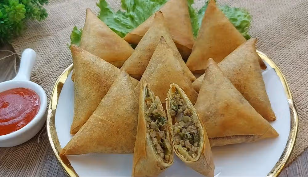 • Samosa Daging: Untuk versi non-vegetarian, daging ayam atau daging kambing dicampur dengan bumbu samosa klasik.
